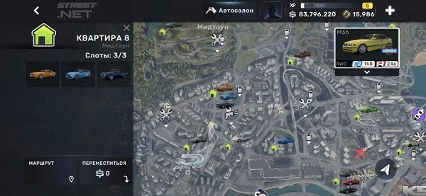 如果地图上出现数字0,就意味着你无需耗费任何积分就能快速传送返回;旁边那个是导航功能,车库支持替换操作,要是点击车辆,系统会显示相关信息。
