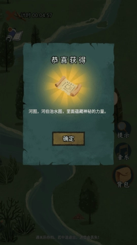 7、获取河图后,便能着手治理水灾,承接各类相关任务并成功完成治水目标,不过途中仍会遭遇重重考验。若在过程中遇到难题,可点击界面右下角的提示功能来辅助进行游戏。