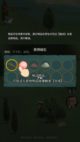 5、场景里能拾取物品,背包中的部分物品可以通过【拖动】操作合成新物品,这些新物品可用于解谜。