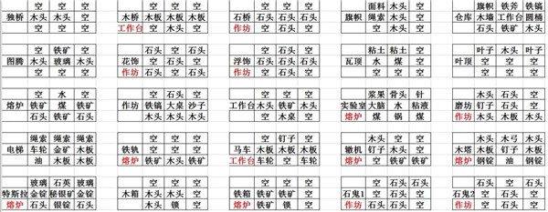 1、桥类、熔炉、作坊等物品合成表一览