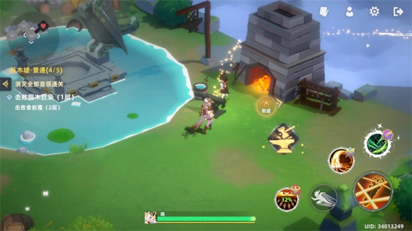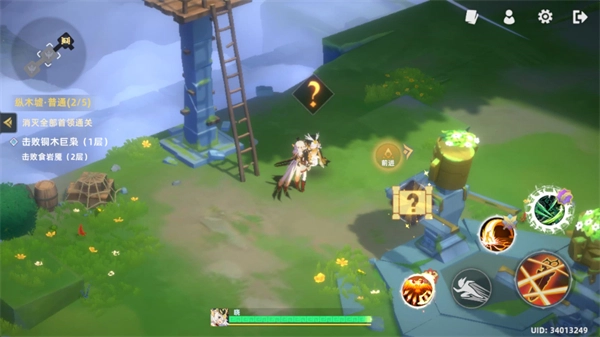 3、进入关卡后左边控制角色的移动,右边是角色的普攻、闪避和技能。