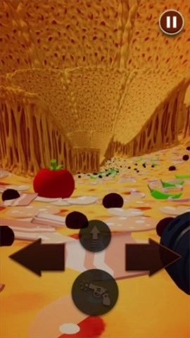 4、在这场充满刺激感的挑战过程里,避开披萨形状的墙壁是你得熟练掌握的关键技能,要灵活运用左右控制键来躲闪,持续突破自我——那如同旋涡般的披萨墙壁可没那么容易应对!要是在前进途中碰到类似铁罐头的障碍物,别犹豫,直接用手枪射击就能解决掉它!