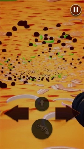 3、当你抵达披萨的内侧区域时,要留意啦!箭头、武器之类的图标会显现出来,左右箭头用来把控方向,向上的箭头可以帮你提升速度,手枪则能清除前方的障碍。
