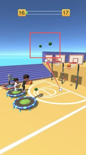 1、物理引擎遵循真实弹力原理进行设计,篮球撞击蹦床时的角度与力度会直接作用于反弹轨迹,玩家需要通过持续练习来熟悉惯性与反射的规律。