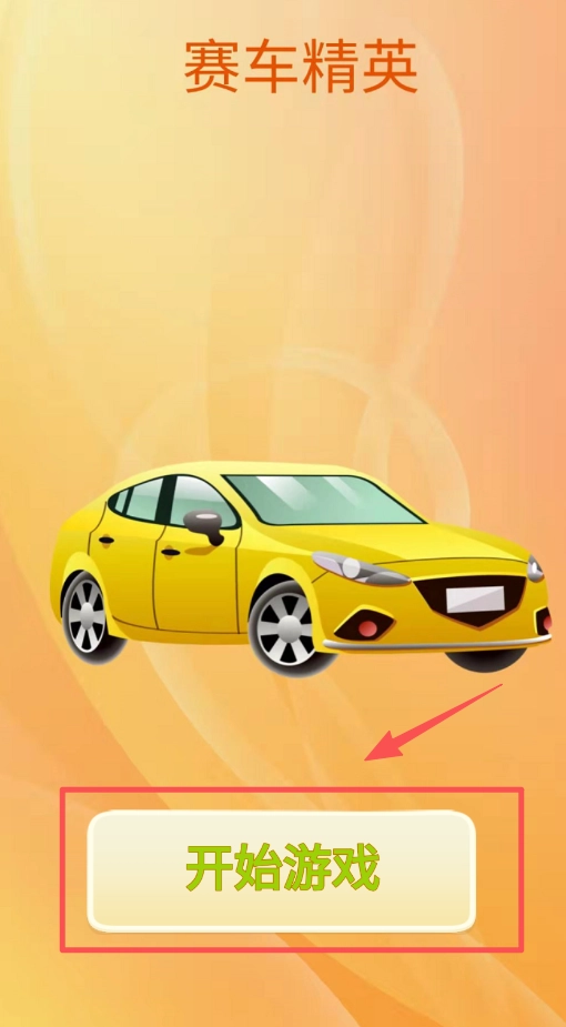 1、看赛车的游戏启动页,点红色方框标注的绿色开始游戏按钮,开启黄色轿车的赛车之旅。
