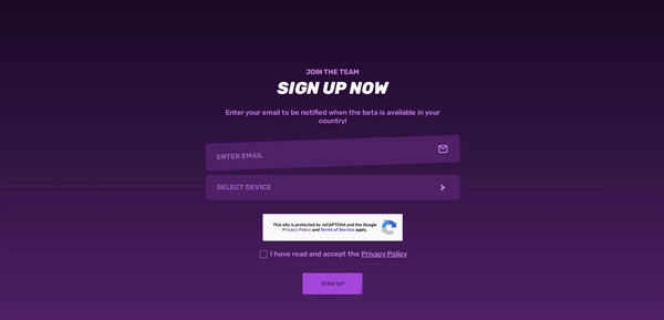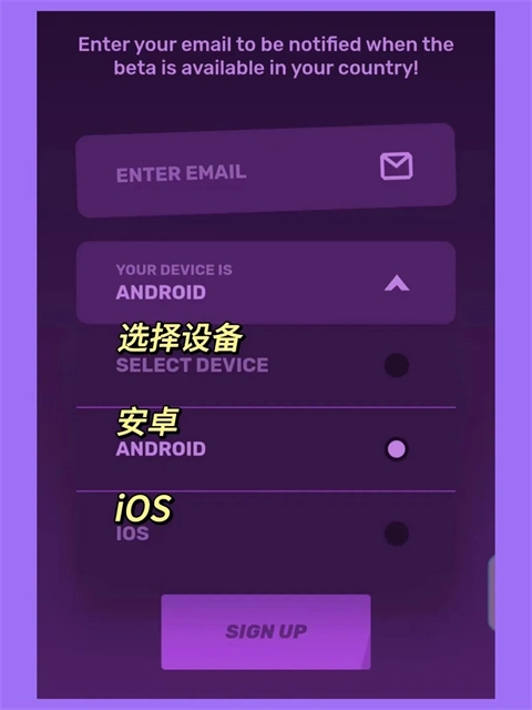 点击页面正中间那个紫色的按钮,上面写着【SIGN UP FOR BETA】,也就是“注册测试”的意思。