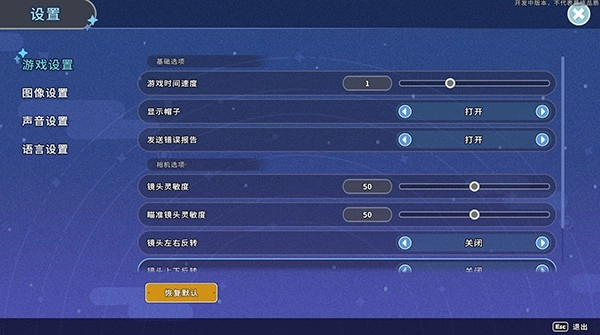 2、在游戏设置一栏,可以设置游戏时间速度、镜头灵敏度等等