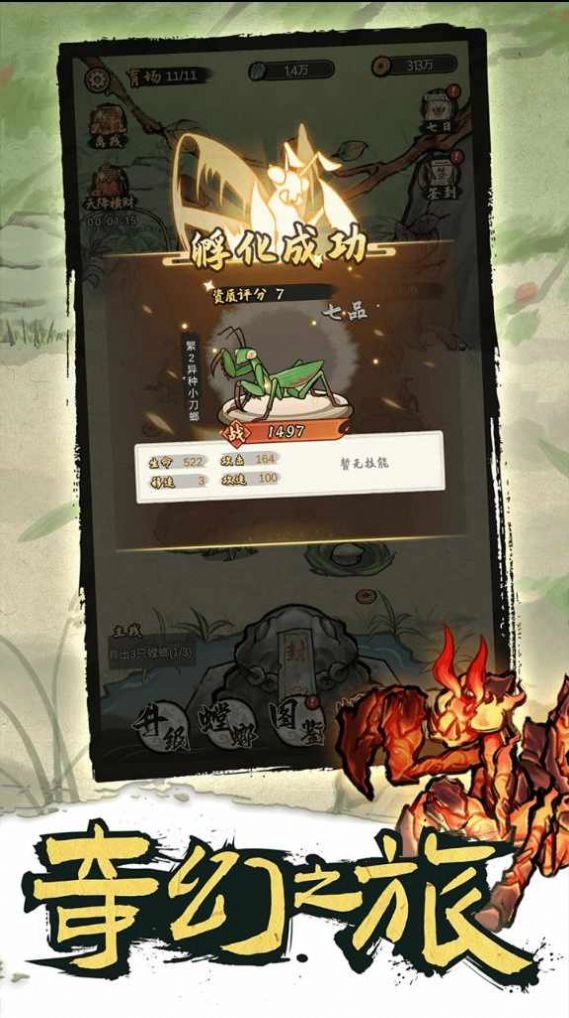 2、每只螳螂具备的能力各有不同,还能够收集更多种类各异的螳螂。