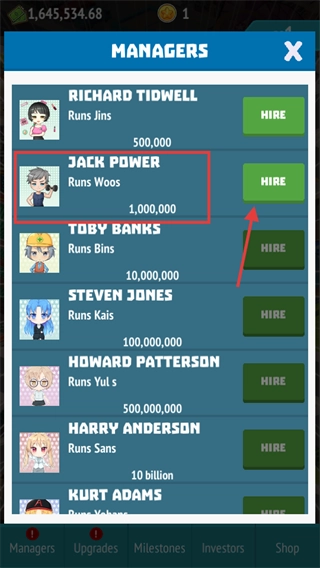 3、在资金充裕的情况下,可聘请【JACK-POWER】这类经理,他们能够负责管理【Woos】类别的偶像,实现自动运营以减少手动操作;建议优先选择成本在可承受范围内的经理,以此提高整体运营效率。