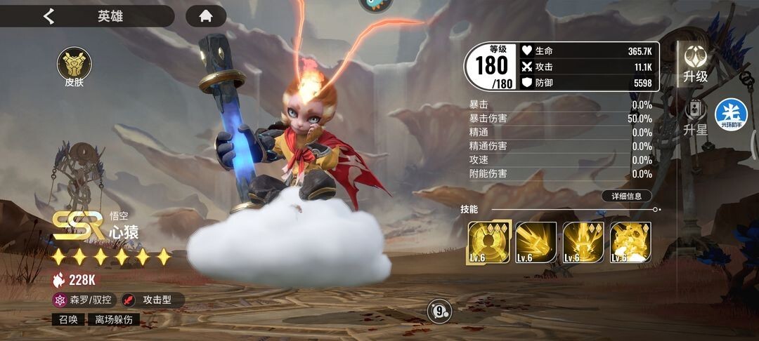 3、丰富的英雄类型,以英雄特质从高到低分为SSR、金卡SR、紫卡R、蓝卡等。这增加了游戏的挑战性。