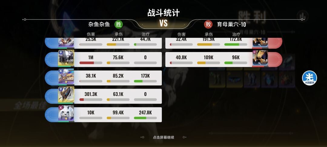 育巢母穴副本产出攻击、治疗和攻速套装,其中攻击套装是适配性最强的装备,治疗套装也是奶妈刚需,因此前期灵能英雄的品质和练度直接关系到给英雄配装备的上限。