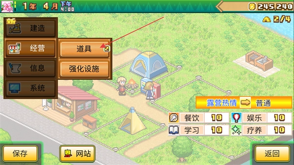 1、在右下的菜单栏中找到经营栏,可以进行营地的设施环境强化。