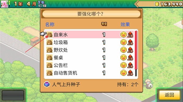 2、点击道具,在道具菜单中选择提升人气的种子或是环境上升的种子进行使用。