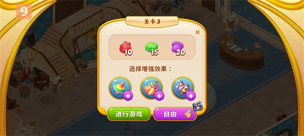3、钥匙是游戏里的关键资源,玩家能通过完成消除关卡来获取。每次进入关卡前,玩家可以选择是否使用增强效果,也能切换到“自由模式”,体验更轻松的玩法。