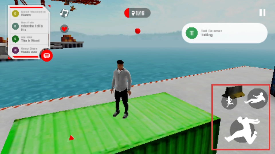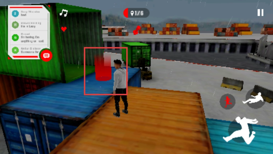 3、利用右侧的动作按钮,执行跳跃、滑行等动作,翻越集装箱等障碍物。