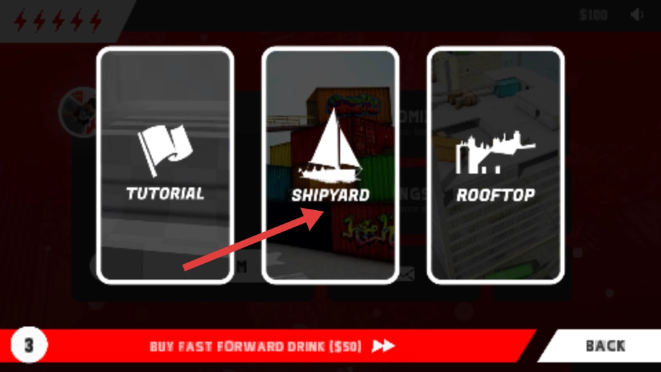 1、选择【SHIPYARD】场景,进入该关卡开始游戏。