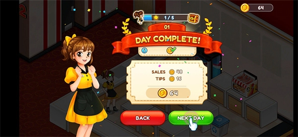 4、当天所有顾客的订单都完成后,就能顺利通过当前关卡,开启下一天的挑战。