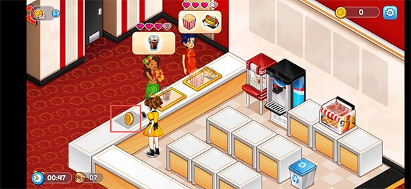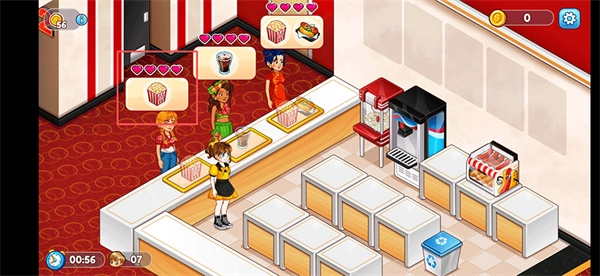 《电影院恐慌3》属于休闲类的时间管理与餐饮模拟经营养成游戏。玩家将以影院经理的身份,负责从售票、售卖爆米花、调控影厅设备,到处理观众需求、应对突发事件等一系列事务,逐步把电影院打造成热闹繁忙的场所。游戏关卡从基础影厅开始,后续会解锁主题影厅、增加顾客数量并开放设备升级等内容。画面采用卡通风格,搭配明亮轻快的色彩,整体节奏支持随时暂停与继续,很适合利用碎片时间感受经营的乐趣。