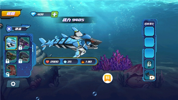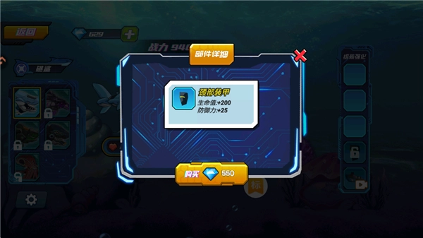8、有了足够的钻石就可以解锁更多组装装备在鲨鱼身上;