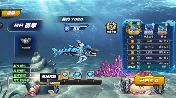 10、凭借强大的组件支持,鲨鱼在排位赛中能拥有更出色的生存能力,排位赛还提供实时排名显示与对应的排位奖励。