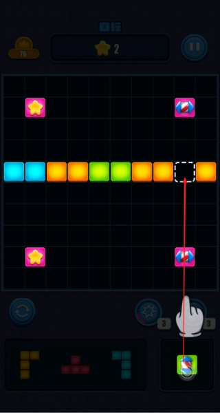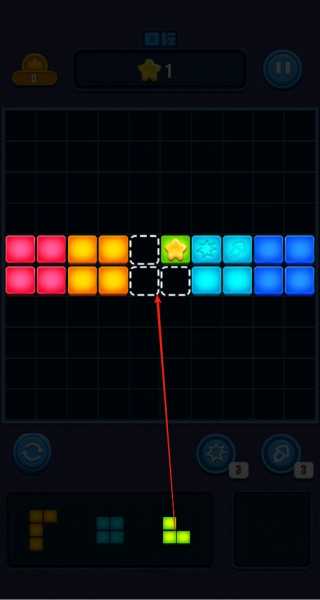 2、通过点击选中方块并拖动到上方空缺位置,完成基础消除操作。