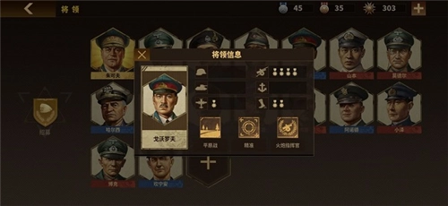 首先说将领。应先明确,本作主力仍为装甲和火炮。理由无需多言,从实战阵型来看,原则上装甲冲前排顶住火力、趁势收割,火炮后排先手输出减轻前排压力,这是典型的配置。
