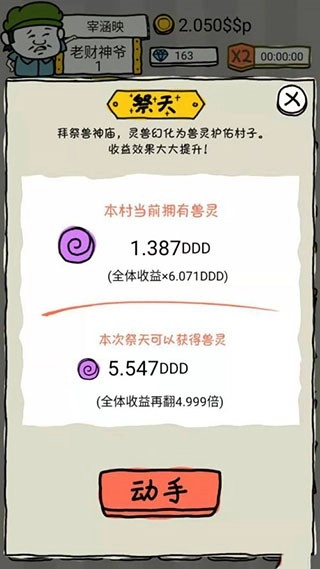 当你实力逐步增强,便可以在东土村建立兽神庙,开启祭天仪式。这个仪式会消耗你所有的资产,将所有灵兽转化为兽灵。