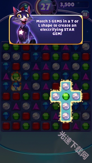 2、玩法非常简单,与经典三消玩法类似,通过三个或以上的相同宝石来进行消除;