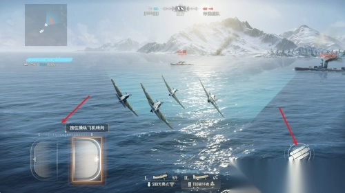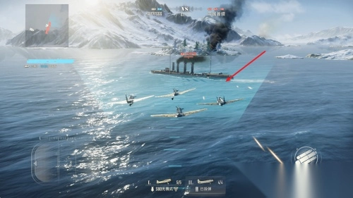 4.飞机周边的蓝色区域是轰炸范围的标识,一旦敌方舰队进入该区域,就能展开轰炸行动。