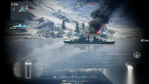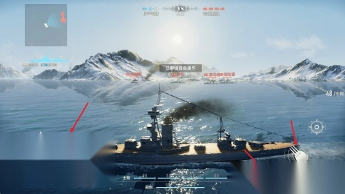 5.接下来我们就能操控战舰发起攻击了,和飞机的操作逻辑相同,左侧负责控制移动,右侧则分别对应主炮与副炮的射击功能。