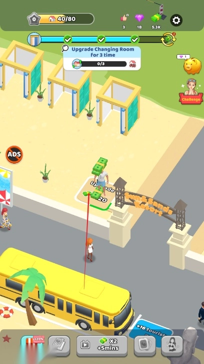 建设玩法丰富多样:涵盖休闲娱乐设施、生活服务场所等多种建筑类型,玩家能够自由规划海滩的空间布局,凭借创意打造出具有独特个性的旅游目的地。每一次对建筑的选择和摆放,都会对游客的吸引力以及最终的收益产生影响。