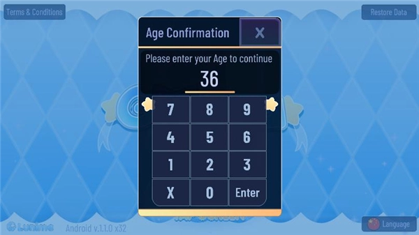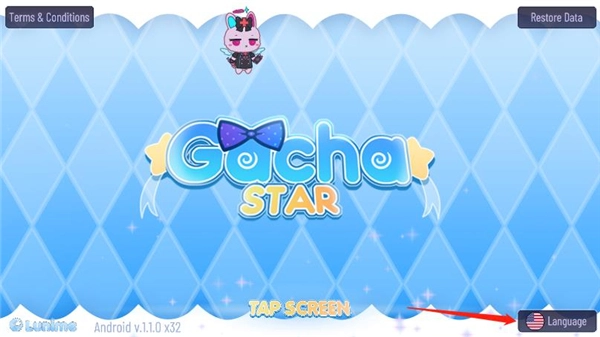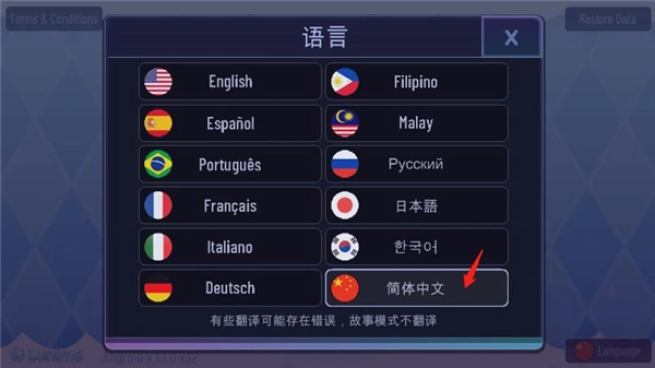 2、进入游戏主界面后,按照图示操作,点击右下角的language按钮来切换语言。