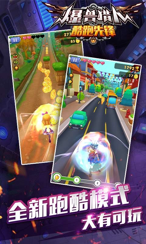 1. 原创爆兽系统:游戏内收录了《爆兽猎人》系列里的诸多经典爆兽角色,玩家能通过收集碎片来解锁和培养这些爆兽,每个爆兽都具备独特技能与属性加成,让跑酷过程充满更多变数与乐趣。