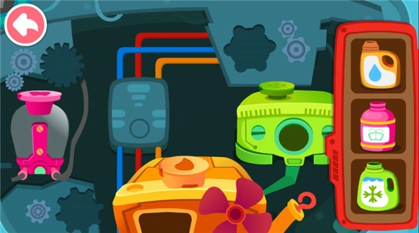 2、通过模拟连接电线、添加机油等真实的修车环节,帮助孩子认识汽车的内部构造。