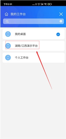 3、接下来,您可以在“我的工作台”界面中,挑选需要使用的工作台(比如湖南/江西演示平台),系统便会自动切换至您所选的工作台。