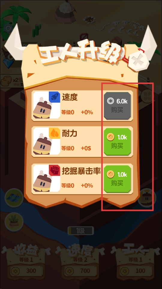 4、购买工人属性,提升速度、耐力和挖掘暴击率,优化挖矿效果,继续提升收益。