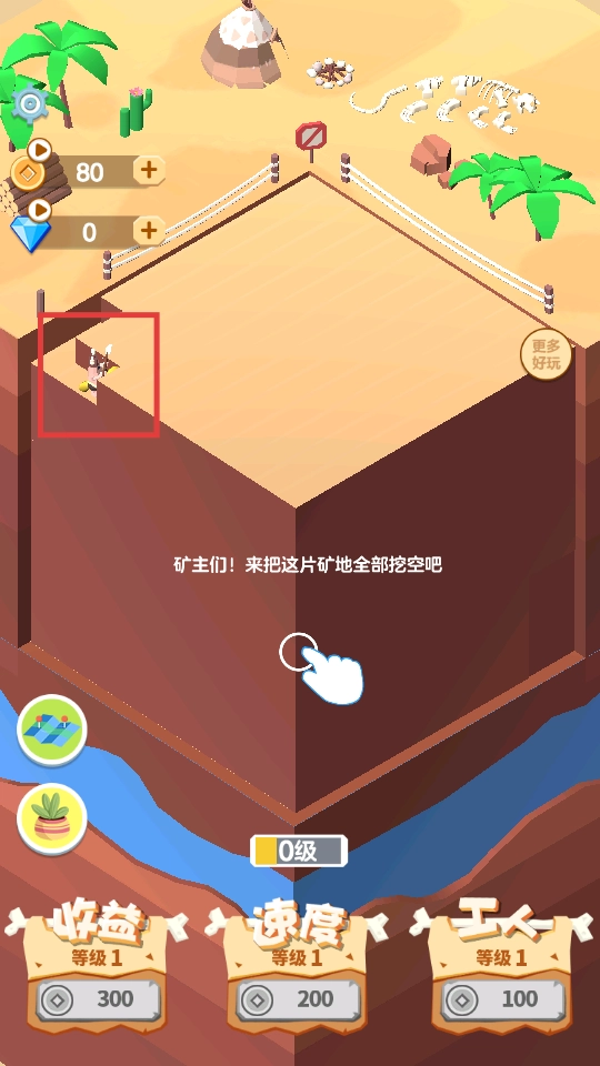 1、点击挖矿,开始挖掘矿地,获取金币资源,推进游戏进程。
