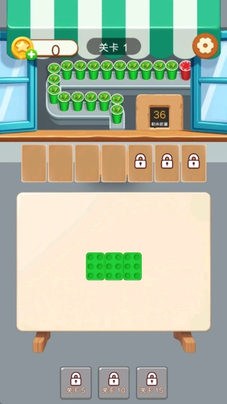 2.进入关卡后,玩家需要根据画面上方的咖啡颜色来点击对应颜色的托盘,当托盘填满对应数量的咖啡即可打包消除。