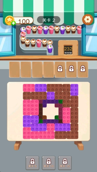 4.如下图所示,随着关卡推进,咖啡的颜色以及数量将会变得更多,将极大的提升匹配消除的难度。