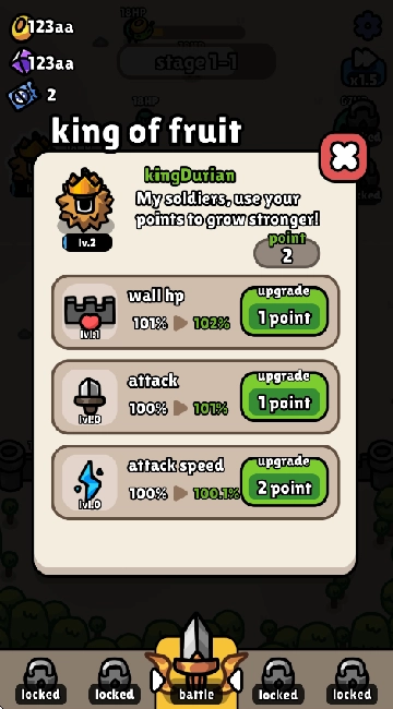1、玩家需通过部署防御设施(如水果炮塔)、升级基地来抵御水果怪物或入侵者的攻击。
