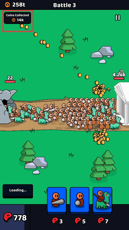 3、收集金币,积累财富,用于升级军队或解锁新单位,提升战斗能力,推进关卡进程。