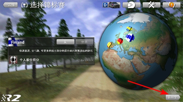 4、点击下一个按钮选择不同的锦标赛,赛事选择是丰富体验的重要操作,选择后可挑战不同国家的赛道风格,提升全面。