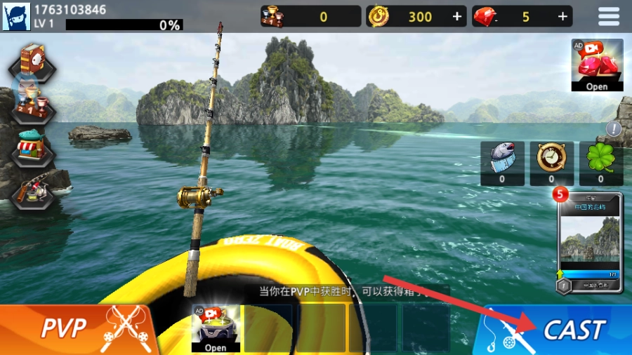 1、点击【CAST】按钮抛竿,开始钓鱼。
