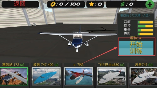 4、如何开始训练:选择一架飞机后,点击“开始训练”按钮,开始你的飞行训练。