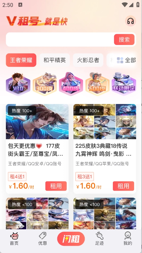 4、点开需要的游戏账号点击“立即租用”。
