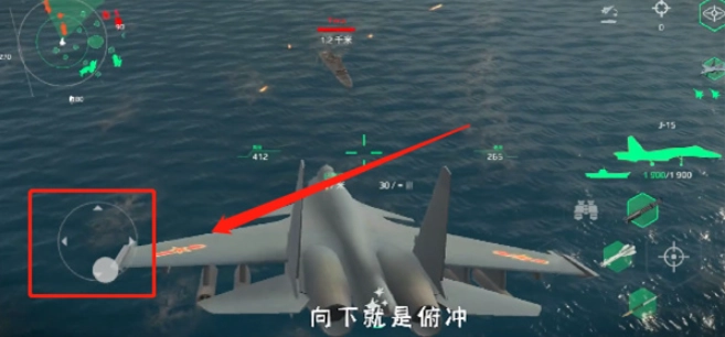 1、在游戏中,除了使用战舰进行攻击外,还可以派遣自己的战机进行轰炸。首先选好自己的战机,然后点击右侧按钮起飞。