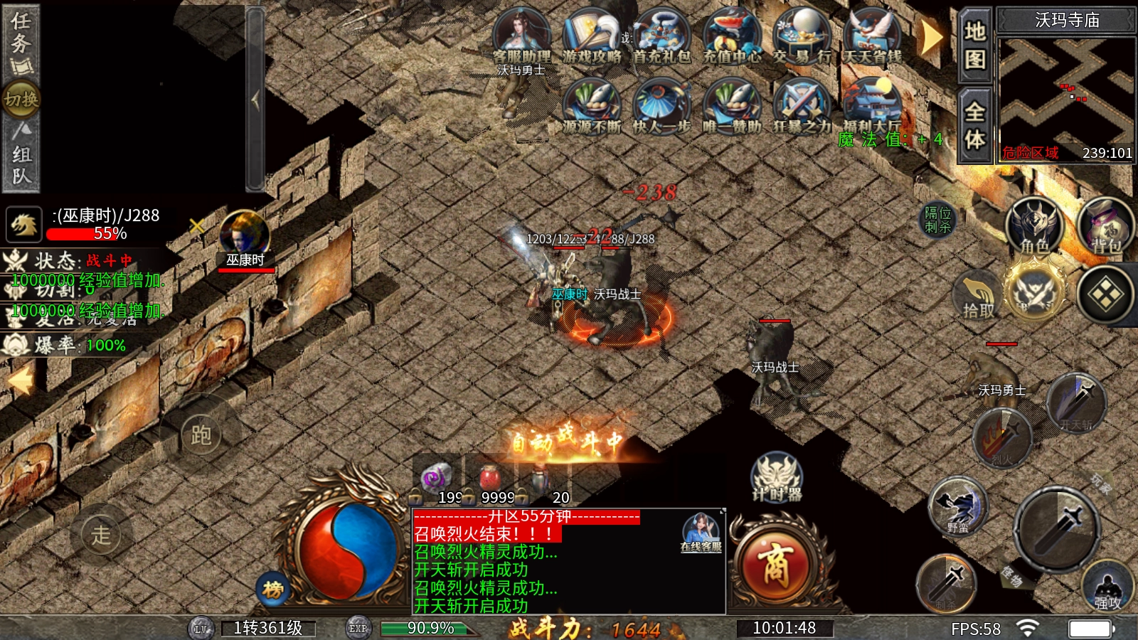 2、地图怪物:等级地图和转生地国前期开荒优选地图,幻境十层、魔龙血域内设高端BOSS,具有一定的挑战性!