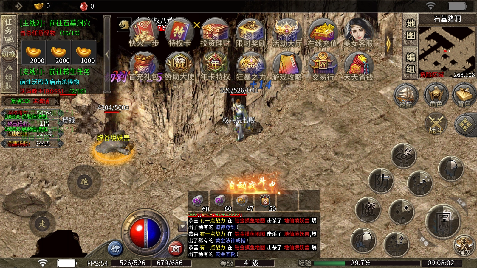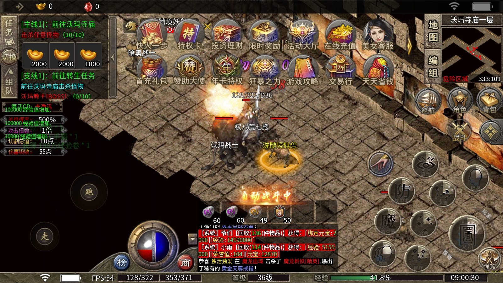 4、神威狱:每天22.30分活动开启,杀死怪物后可爆出一切装备。