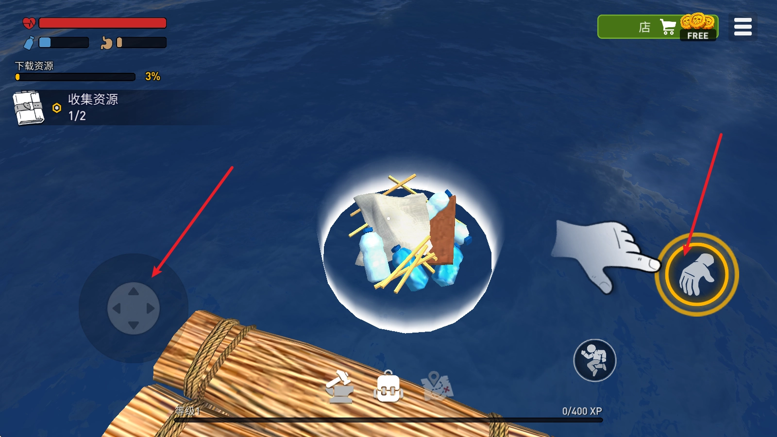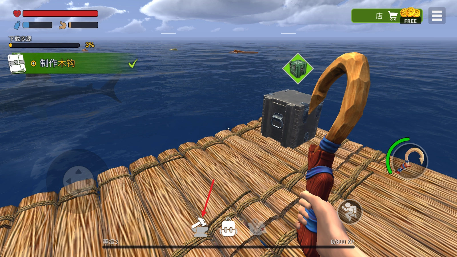 1、玩家将登上竹筏开启求生冒险,搜集周边的各类资源,制作不同的武器与道具,助力自己更顺利地存活下去。