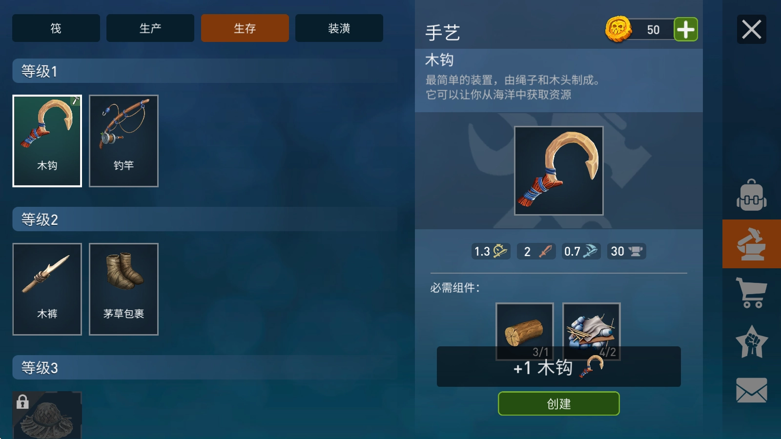 2、当拥有了充足的资源后,就需要着手打造属于自己的避难所,并通过持续的完善使其愈发坚固,最终成为一座海上堡垒。